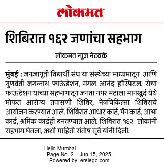 Health is Wealth: 162 beneficiaries attended a Free Health Screening Camp at JVS sangh held by GJK Foundation in collaboration with Mangal Anand Hospital and ROCH Foundation.